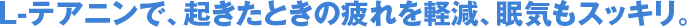 | 届出表示 | 本品には「L-テアニン」が含まれます。 L-テアニンには、夜間の良質な睡眠(起床時の疲労感や眠気を軽減)をサポートすることが報告されています。 |