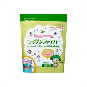 こどもサンファイバーは、水溶性食物繊維「グアーガム分解物」(植物由来成分)のパワーにより、お子さまの自然なスッキリをサポートする商品です。